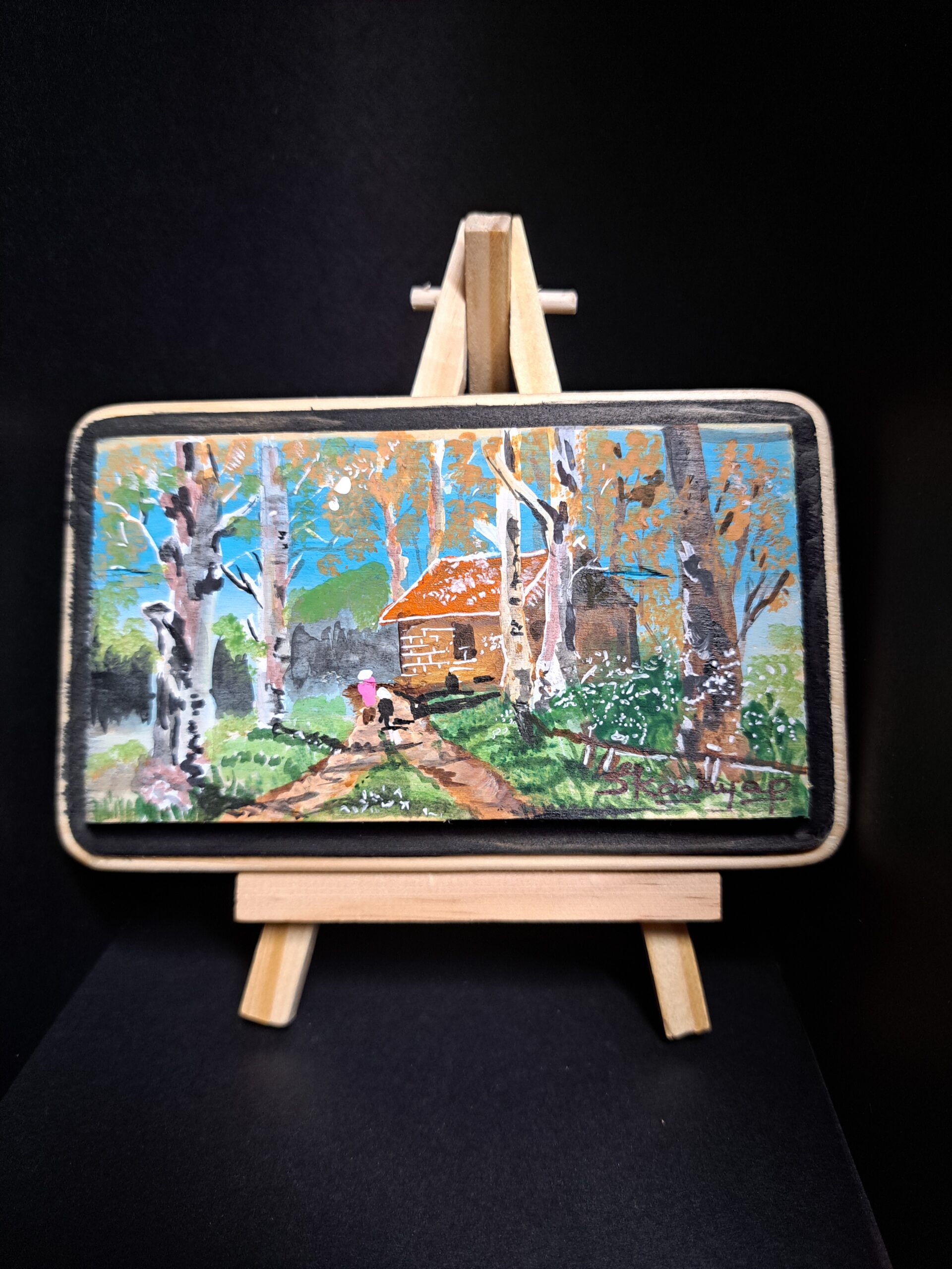 I am the proud owner of this beautiful little painting. It makes me think of my Dads place out in the middle of the forest